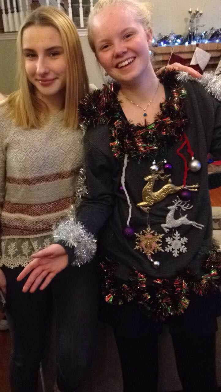 hot glue gun-i kasutada said, seega hakkasime kiirelt Sarale asju kylge toppima. Kuna ruumis oli inimesi siiski yli palju ja j6ulukaunistused praktiliselt lendasid yhest k2est teise oli kogu see kaunistamisprotsess nii mega naljakas ja keeruline. Vahepeal n2iteks liimis Marca lisaks kaunistustele ka mu juuksed kampsuni kylge. Kui aeg otsa hakkas saama siis proovisime veel kiirelt k6iki asju lisada ise veel naersime Marca-ga et ''Savi topi seda liimi igalepoole ja vajutame k6ik kinni lihtsalt.'' Poole peal yritas Marca samal ajal snappida kui asju liimisime mis oli j2lle omamoodi katastroof haha. Kui aeg t2is oli seisid k6ik kel kampsun seljas oli kuuse juurde ja vanemad hakkasid hindama. Ytlen ausalt, et nad k6ik n2gid v2lja